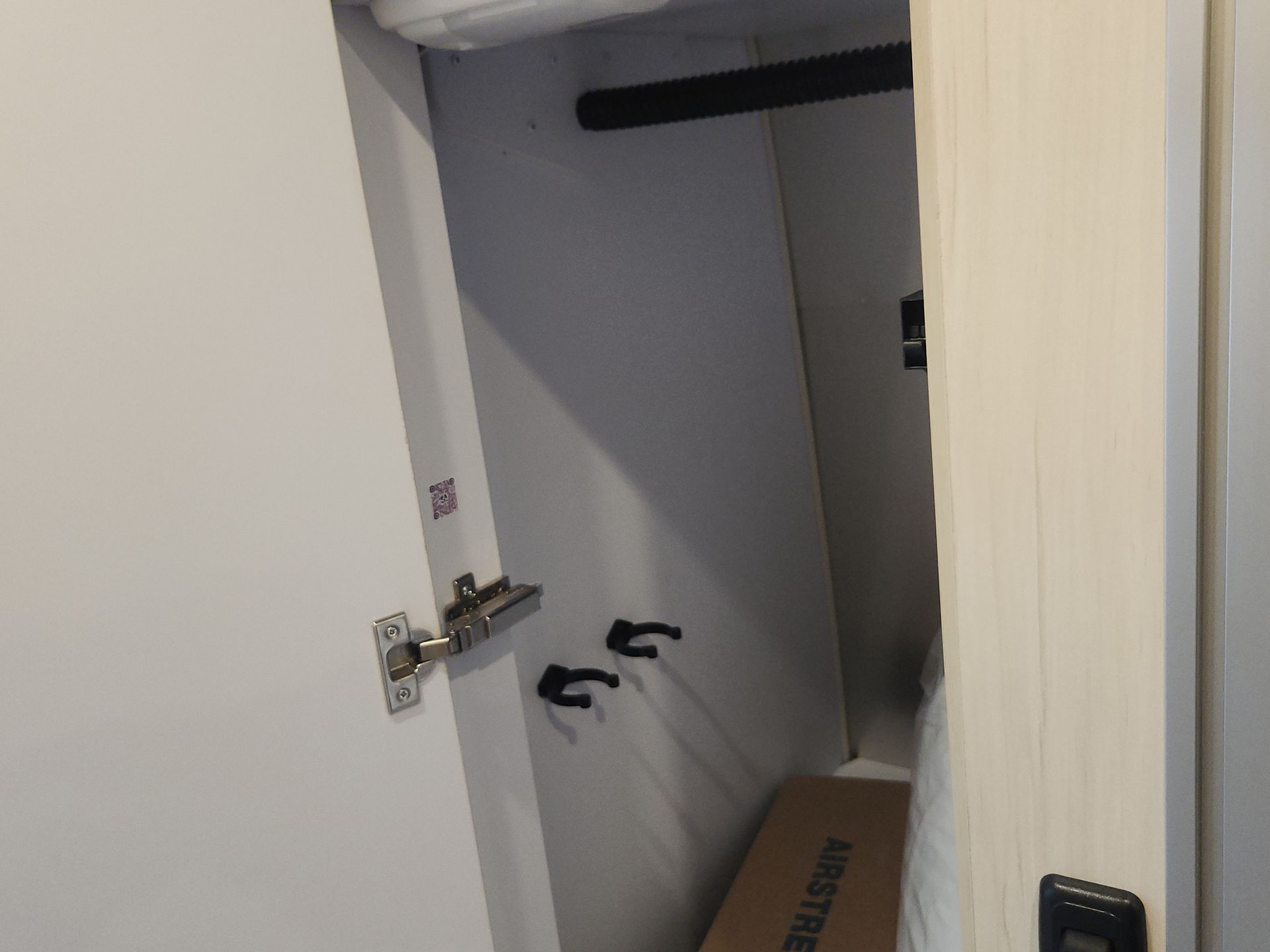 Inside, the thoughtfully designed layout maximizes space and comfort. At the front, twin beds provide a cozy sleeping area, with a center aisle that opens up the space and offers additional storage options underneath. The main living area includes a convertible dinette that comfortably seats four and can be transformed into an extra sleeping space when needed. Adjacent to the dinette, a lounging area with a wall-mounted TV creates a perfect spot for relaxation.