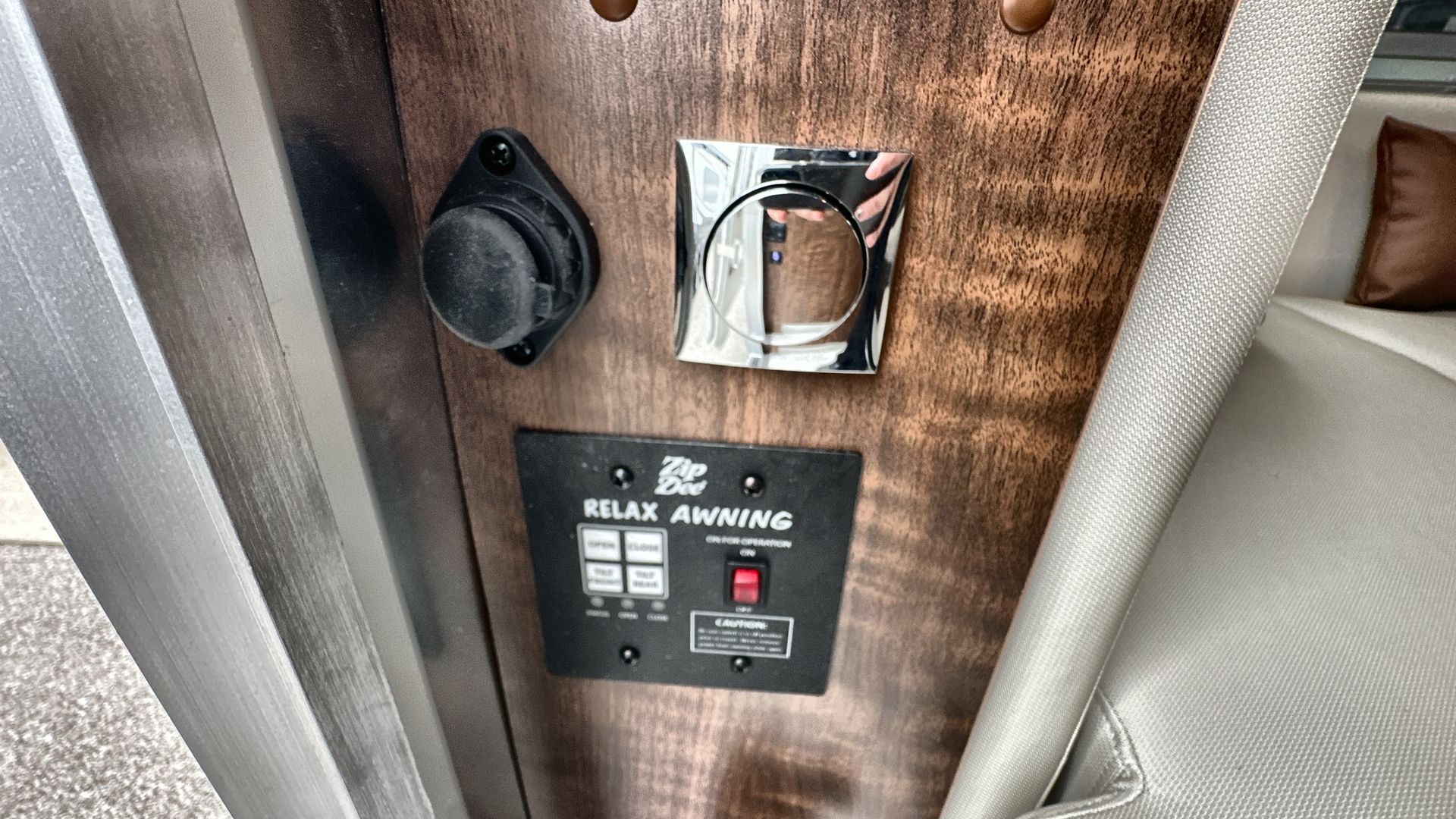 Inside, the 27FB Queen offers a spacious and thoughtfully arranged interior. The front features a comfortable queen-size bed with an AdaptaFlex memory foam mattress, flanked by nightstands and illuminated by panoramic windows that fill the space with natural light. For privacy, blackout curtains are easily accessible.