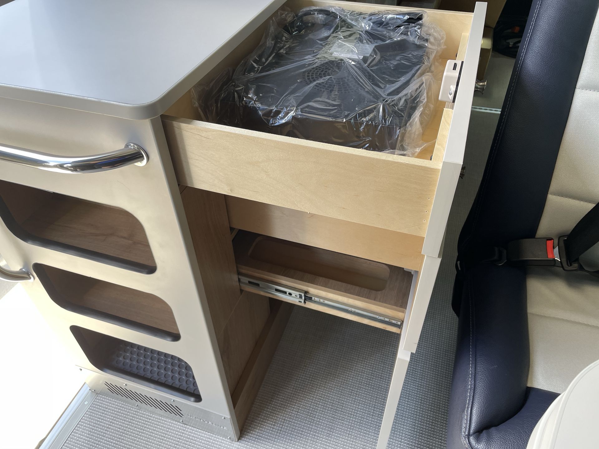 The 2025 Airstream Rangeline is a modern Class B motorhome designed to enhance your travel experiences. Built on the reliable RAM ProMaster® 3500 chassis, it features a fuel-efficient 3.6L Pentastar® V6 engine with 276 horsepower and a nine-speed automatic transmission, ensuring a smooth and responsive drive. Measuring approximately 21 feet in length, the Rangeline offers a compact yet spacious design, making it easy to maneuver through city streets and scenic byways alike. Its sleek exterior is complemented by practical features such as a 12-foot awning, providing shade and comfort during outdoor activities. Inside, the Rangeline boasts a thoughtfully designed interior that maximizes space and functionality. The flexible seating arrangement includes swiveling captain's chairs and a multi-adjustable, removable table, creating a comfortable area for dining, working, or relaxing. The galley is equipped with an all-electric refrigerator, a stowable induction cooktop, a microwave, and ample storage within soft-close, locking drawers, making meal preparation convenient and efficient. Sleeping accommodations are designed with comfort in mind. The rear features a foldable bed supported by a European suspension system, providing a restful night's sleep. For those needing additional sleeping space, an optional pop-top expands the sleeping capacity, offering a cozy area for two more passengers. The Rangeline's wet bath includes a shower, sink, and flush toilet, all within an easy-to-clean compact space, ensuring you have the comforts of home while on the road. Technology and safety are at the forefront of the Rangeline's design. The cockpit features a 10.1-inch Uconnect® touchscreen with voice command capability, Apple and Android compatibility, and in-dash wireless cell phone charging. Safety features include automatic headlamps with high-beam control, crosswind assist, drowsy driver detection, electronic stability control, and multiple safety impact airbags, providing peace of mind on every journey. With its combination of style, comfort, and modern features, the 2025 Airstream Rangeline invites you to explore the world without sacrificing the comforts of home. Embark on your next adventure with confidence in this exceptional motorhome.