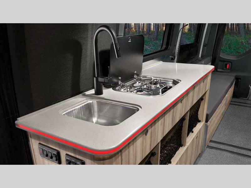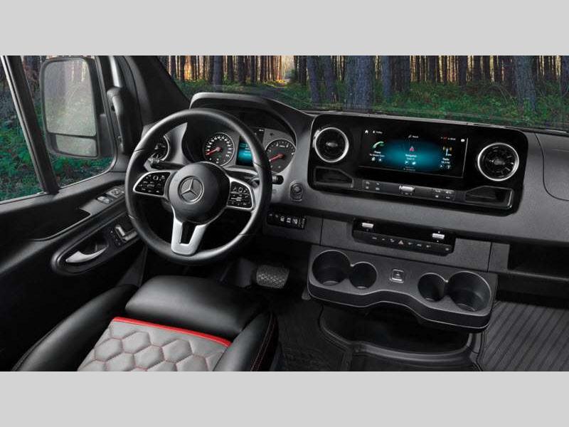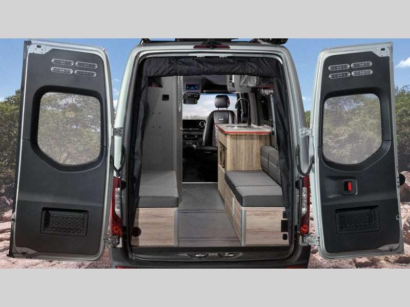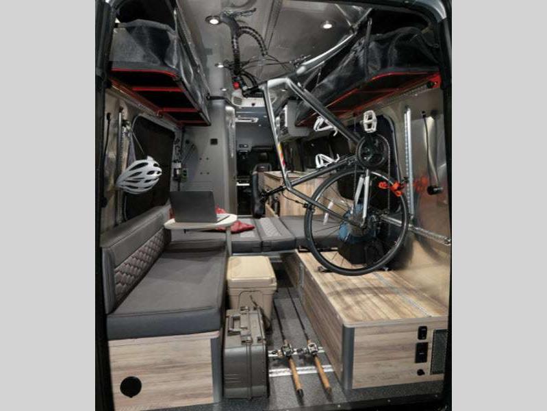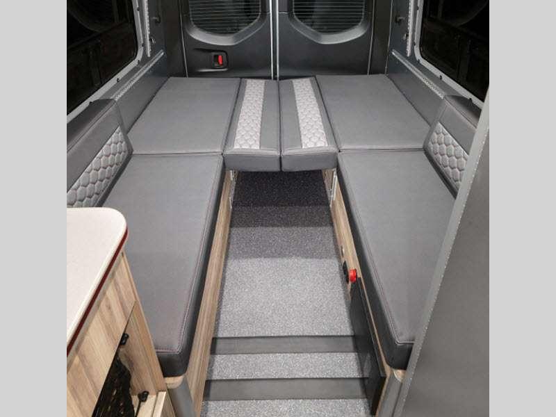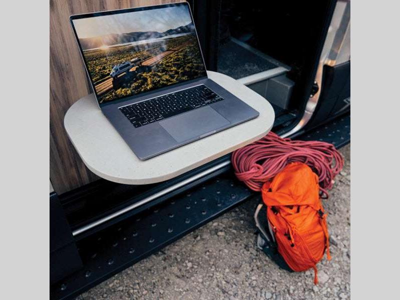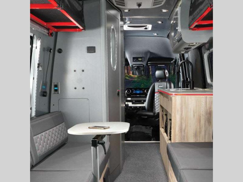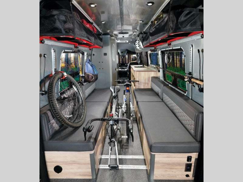 The Interstate 24X is extremely safe to travel in because of the brake assist, active distance assist, driver attention assist, and more! The black roof rack will secure your gear while you travel, and the outdoor table mount gives you a place to set your gear. The amenities only get better from there with a rear convertible space, aluminum aircraft L-track storage system, oversized center aisle storage for kayaks or surfboards, heated wet bath, and Flex Bed system.